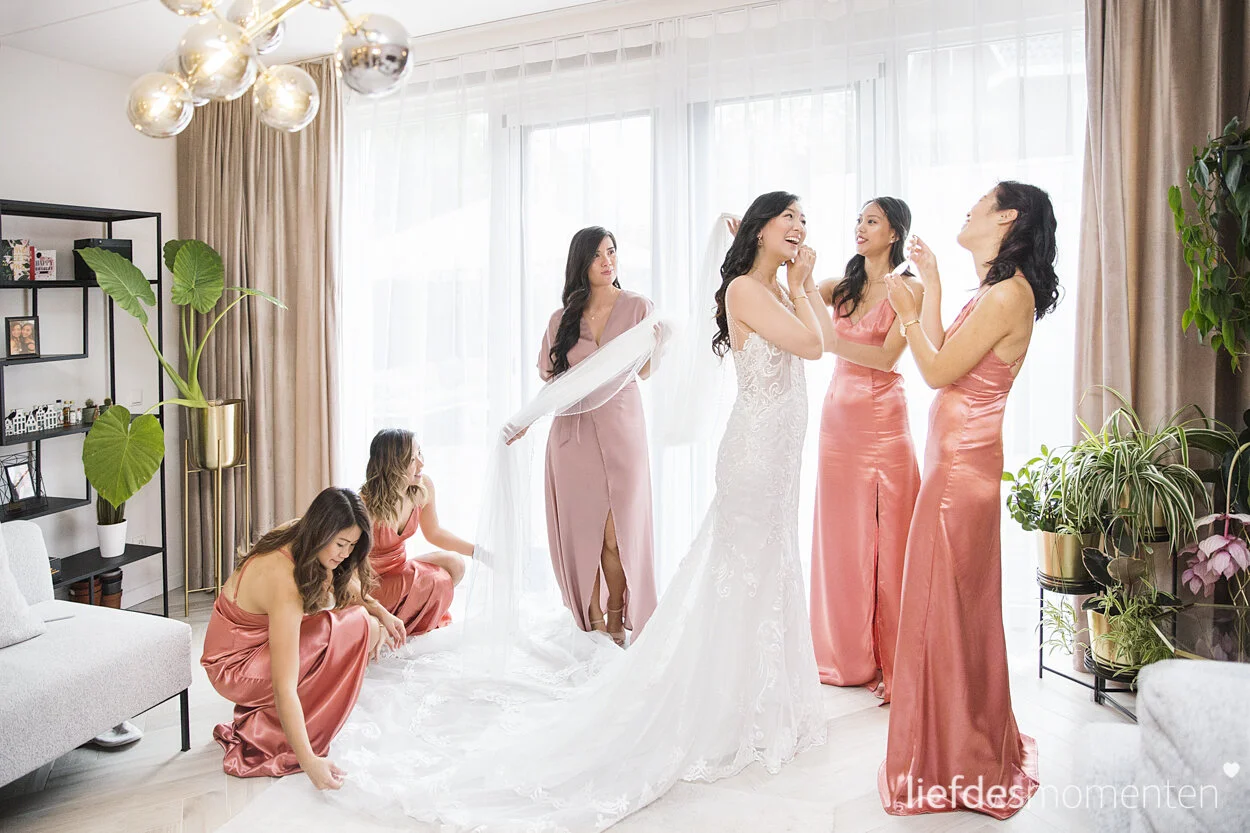 Bruidsmeisjes zijn altijd druk in de weer. Zij zorgen dat de dag goed verloopt, zijn de sfeermakers, zorgen voor de organisatie van het chinees banket tot de leuke deurspellen. Maar hun meest belangrijke taak is er zijn voor de bruid. De bruiloft van Ana en Toan, is mede door hun lieve bruidsmeisjes en jongens zo bijzonder. Iets waar het bruidspaar oprecht trots op mag zijn.