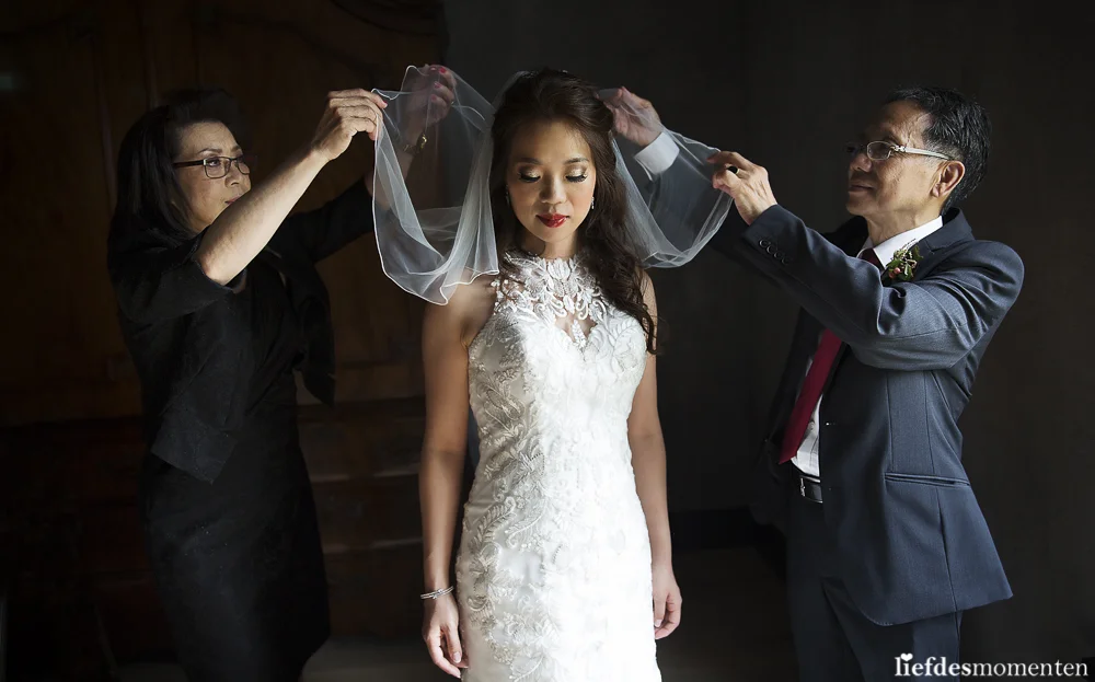 Als fotograaf met Chinees Indische roots weet je dat er een moment komt dat de ouders van de bruid de sluier over het gezicht van de bruid doet. Zo ook bij de bruiloft van Louise en Gideon. Wat heb ik genoten van dit mooie bruidspaar, hun familie en vrienden.