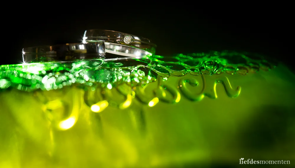 En wanneer de bruidegom dan ook nog werkt bij die bekende brouwerij in het oosten des lands.. tja. Dan kan je als fotograaf de ringen maar op 1 manier vastleggen.