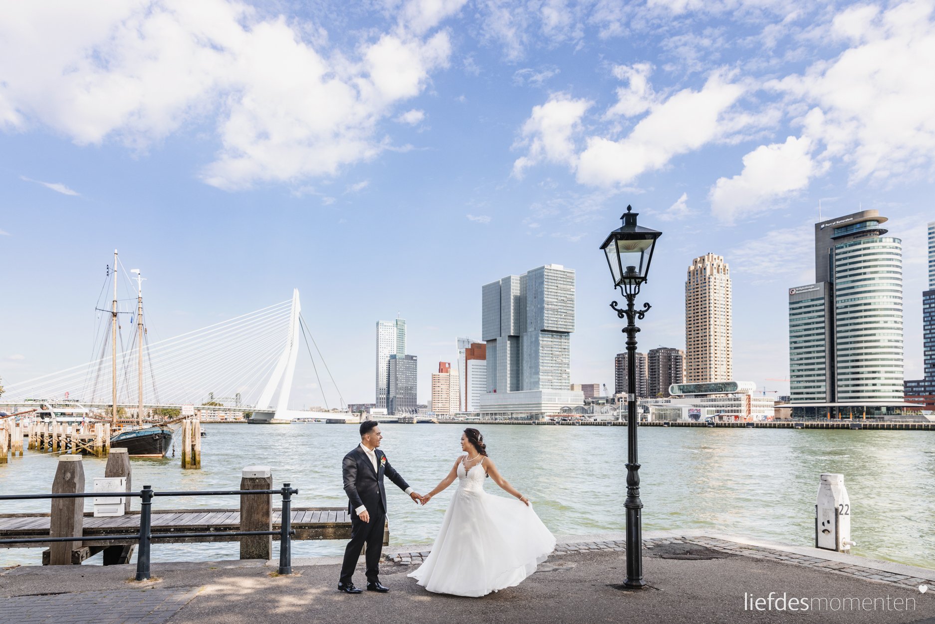 Trouwen in het stadhuis van Rotterdam, lunchen in de Machinist, fotoshoot in het Park en dineren in het mooie Wereld museum. De bruiloft van Wingyi en Oscar was in een woord.: genieten.