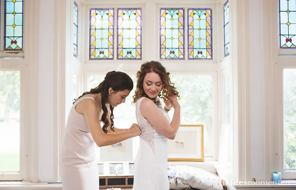 Trouwen doe je niet alleen. Dat doe je met de mensen die dichtbij je staan. Terwijl het beneden in de woonkamer een gezellige drukte is, deed Judith haar trouwjurk aan met de hulp van haar zusje. Mazzeltov Danny en Judith!